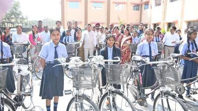 उद्योग मंत्री लखन लाल देवांगन ने छात्राओं को बांटी साइकिल, बोले: खूब पढ़े-खूब बढ़े