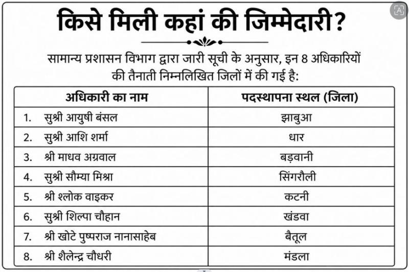 एमपी में 2025 बैच के IAS अधिकारियों की पोस्टिंग, प्रशासन को मिले नए चेहरे