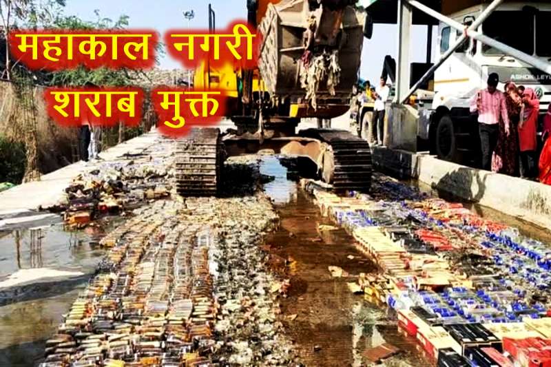 शराबबंदी को लेकर उज्जैन में हुई बुलडोजर कार्रवाई, लगभग 50 लाख रुपए की शराब की गई नष्ट