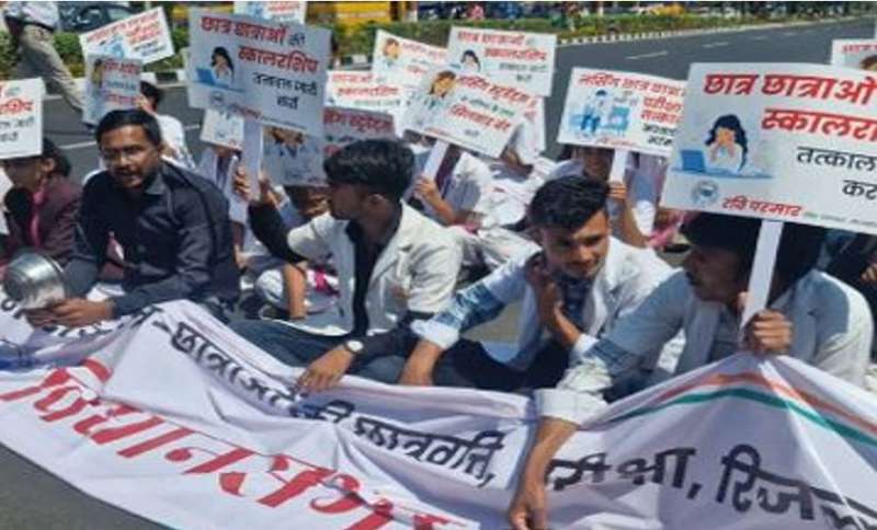 भोपाल में बारिश के बीच नर्सिंग छात्राओं संग सड़क पर बैठे NSUI कार्यकर्ता, पुलिस ने किया गिरफ्तार