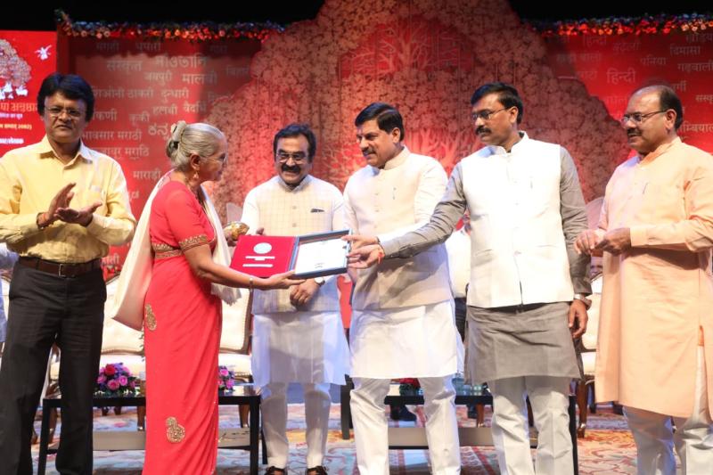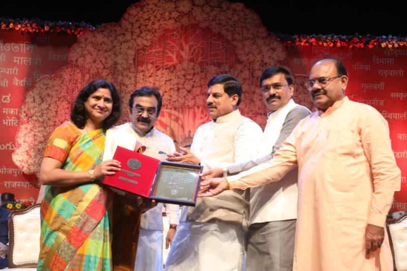 मुख्यसमंत्री डॉ. यादव ने कहा कि आज ही अभियंता दिवस भी मनाया गया है। उन्होंने सभी को अभियंता दिवस की शुभकामनाएं दीं। उन्होंने कहा कि भारत एकमात्र देश है, जहां सर्वाधिक मातृभाषा हिंदी बोली जाती है। भगवान श्रीराम ने हजारों साल पहले मातृभाषा की गरिमा का उल्लेख किया था। आल्हा-ऊदल के महाकाव्य में हिंदी की सुंदरता देखने को मिलती है। रानी लक्ष्मीबाई और रानी दुर्गावती पर काव्य लिखकर इसे पाठ्यक्रम में शामिल करना चाहिए। राजाभोज के काल में कविता के रचनाकारों को स्वर्ण मुद्राएं देकर सम्मानित किया जाता था। महाकवि कालिदास की रचनाओं से मालवी, भीली, कोरकू जैसी अनेक भाषाएं निकली हैं। उन्होंने कहा कि भूतपूर्व प्रधानमंत्री स्व. श्री अटल बिहारी वाजपेयी ने हिंदी काव्य रचनाओं को अलग स्थान दिलाया। उन्होंने 50 वर्ष के राजनीतिक जीवन में सर्वाधिक समय नेता प्रतिपक्ष के पद को सुशोभित किया। वर्तमान में प्रधानमंत्री श्री नरेन्द्र मोदी दुनिया के हर बड़े मंच पर हिंदी भाषा में संबोधित के जरिए भारत को गौरवान्वित करते हैं। उनके पहुंचने मात्र से ही मंच प्रकाशमय हो जाता है। कार्यक्रम में संस्कृतति एवं पर्यटन राज्यामंत्री (स्वातंत्र प्रभार) श्री धर्मेंद्र सिंह लोधी ने कहा कि हिंदी विश्व में सबसे ज्यादा बोली जाने वाली भाषाओं में तीसरे स्थान पर है। हिंदी हमारी सांस्कृतिक चेतना और हमारे विचारों को दर्शाने वाली भाषा है। सभी सम्मानित 10 विभूतियों को मध्य प्रदेश संस्कृति विभाग की ओर से बधाई देता हूं। हिंदी को राष्ट्रभाषा बनाने के लिए राज्य सरकार कार्य कर रही है। प्रदेश में मेडिकल की पढ़ाई हिंदी में कराने की शुरुआत हुई है। आरएनटीयू के कुलगुरु डॉ. संतोष चौबे ने कहा कि मध्यप्रदेश शासन द्वारा कला, संस्कृति के क्षेत्र में शुरू हुए कार्य देशभर में पहचान बना रहे हैं। विश्वरंग दुनिया के कई देशों तक फैल चुका है। कई मॉरीशस सहित अनेक देशों में हिंदी पढ़ाई जाती है। विश्व हिंदी ओलंपियाड 50 देशों में आयोजित हो रहा है और करीब 4 से 5 लाख लोग इसमें शामिल होंगे। विश्वरंग का समापन श्रीलंका की राजधानी कोलंबो में किया जाएगा। उन्होंने कहा कि हम मुख्यमंत्री जी को विश्व हिंदी ओलंपियाड के समापन कार्यक्रम में मुख्य अतिथि के रूप में आमंत्रित करते हैं। अपर मुख्य सचिव संस्कृति एवं पर्यटन श्री शिवशेखर शुक्ला ने कहा कि भारतीय भाषा अनुष्ठान हिंदी के सम्मान का एक उल्लास पर्व है। मध्यप्रदेश सरकार हिंदी को सर्वोच्च स्थान दिलाने में योगदान करने वाली विभूतियों, लेखकों, साहित्यकारों और रचनाकारों को सम्मानित कर स्वयं गौरवान्वित हो रही है। सम्मान एवं अलंकरण कार्यक्रम में मुख्यमंत्री डॉ. यादव ने इन 10 विभूतियों को विभिन्न राष्ट्री