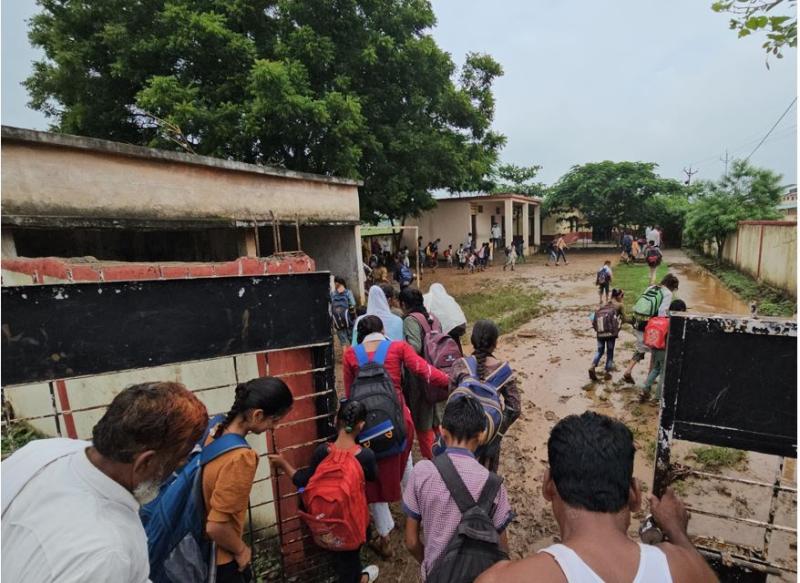 तेज बारिश ने सरकारी स्कूल को बनाया तालाब, बच्चों को गोद में उठाकर बाहर ले गए अभिभावक