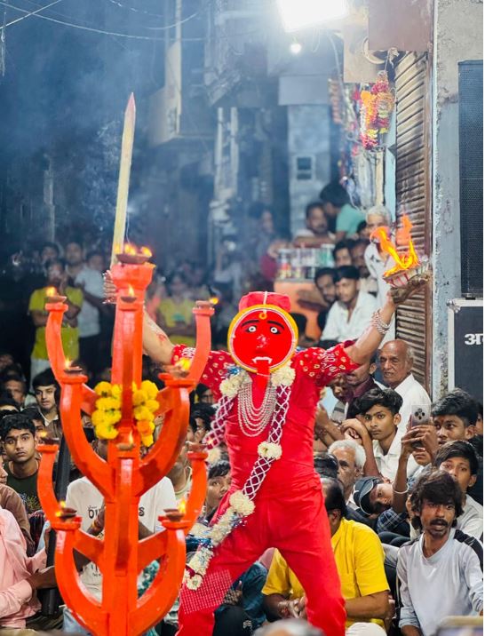गुरुवार सुबह भगवान नरसिंह और राक्षसराज हिरण्यकश्यप की झांकी निकाली गई, जिसके बाद महाकाली की भव्य शोभायात्रा संपन्न हुई। इस आयोजन का समापन भगवान नरसिंह द्वारा हिरण्यकश्यप वध के साथ हुआ। इस परंपरा की विशेषता यह है कि मां अम्बे और मां महाकाली का वेश केवल एक ही कुल के लोग धारण करते हैं। इस वर्ष संतोष भावसार ने मां महाकाली की भूमिका निभाई, मोहित बसंत भावसार ने भगवान नरसिंह, सुनील भावसार ने हिरण्यकश्यप, अक्षय धारे ने महाकाली के सिंह, दिव्यांश भावसार और शशिकांत पटेल ने क्रमशः गणेश और हनुमान का रूप धारण किया।