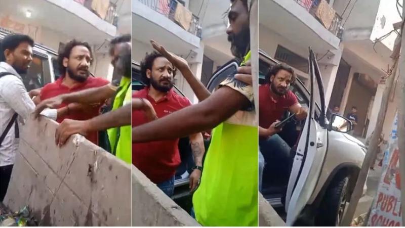 फॉर्च्यूनर से निकला गुंडागर्दी करता शख्स, सफाईकर्मी को थप्पड़ मारकर पिस्तौल तानी, गाली-गलौज का वीडियो सोशल मीडिया पर आग की तरह फैला