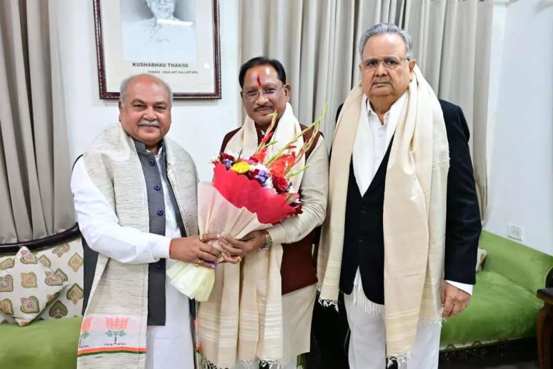 Bhopal/Raipur. छत्तीसगढ़ के मुख्यमंत्री विष्णुदेव साय ने अपने भोपाल प्रवास के दौरान मध्यप्रदेश विधानसभा अध्यक्ष नरेंद्र सिंह तोमर से उनके सरकारी निवास पर सौजन्य भेंट की। इस बैठक में दोनों नेताओं ने राजनीतिक, प्रशासनिक और विकास संबंधी मुद्दों पर खुलकर विचार-विमर्श किया। मुख्यमंत्री साय ने कहा कि छत्तीसगढ़ और मध्यप्रदेश के बीच ऐतिहासिक, सांस्कृतिक और आर्थिक संबंध हमेशा से विशेष रहे हैं, जिन्हें और मजबूत बनाने के लिए निरंतर प्रयास जारी हैं।