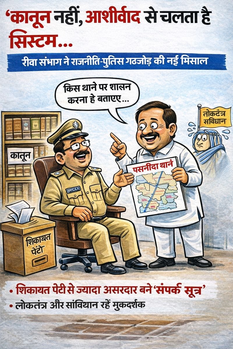 कानून नहीं, आशीर्वाद से चलता है सिस्टम” — रीवा संभाग में राजनीति-पुलिस गठजोड़ की नई मिसाल