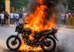 जिला न्यायालय के पास चलती बाइक बनी आग का गोला, मचा हड़कंप