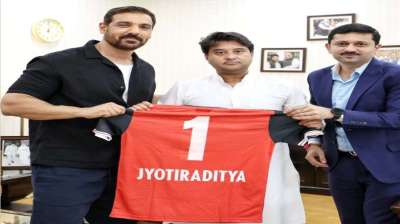 खेल मंत्री सिंधिया से मिले नॉर्थईस्ट यूनाइटेड एफसी के मालिक जॉन अब्राहम, क्षेत्र में खेल प्रतिभाओं पर हुई चर्चा