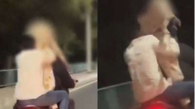 नशे में धुत लड़की ने मचाया उत्पात, चलती बाइक पर खड़े होकर डांस करती रही लड़की