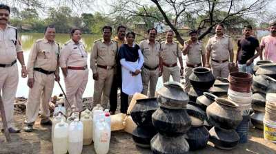 34 हजार रुपए कीमत की अवैध कच्ची शराब व महुआ लाहन जब्त