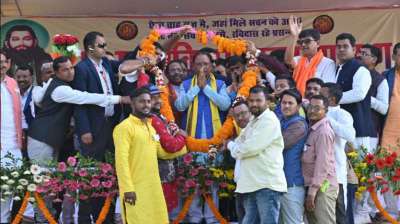 गुरु रविदास महासभा राज्यस्तरीय महासम्मेलन में पदाधिकारियों ने मुख्यमंत्री विष्णु देव साय का स्वागत गजमाला से किया